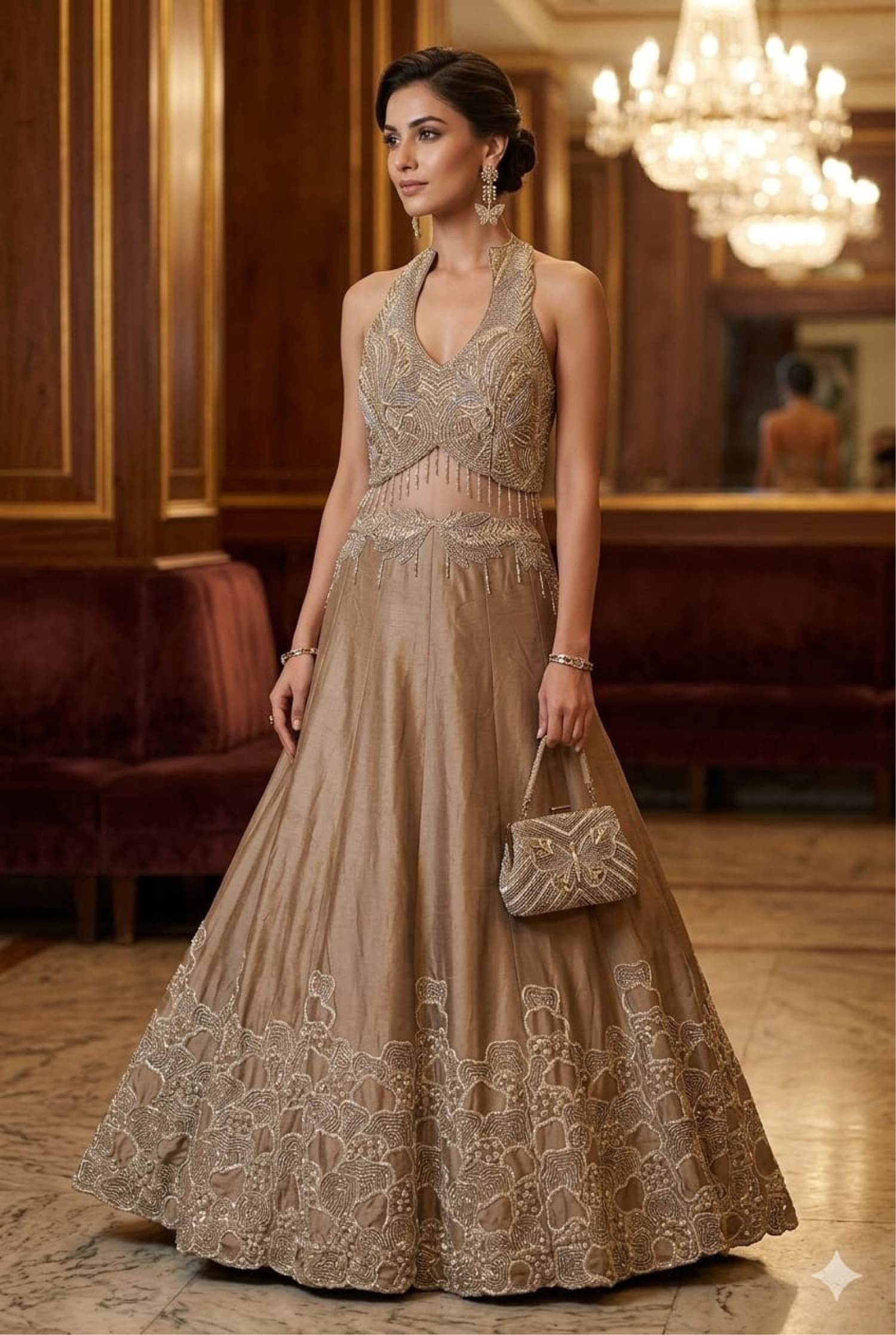 Biege Color Party wear Gown :: MY SHOPPY LADIES WEAR