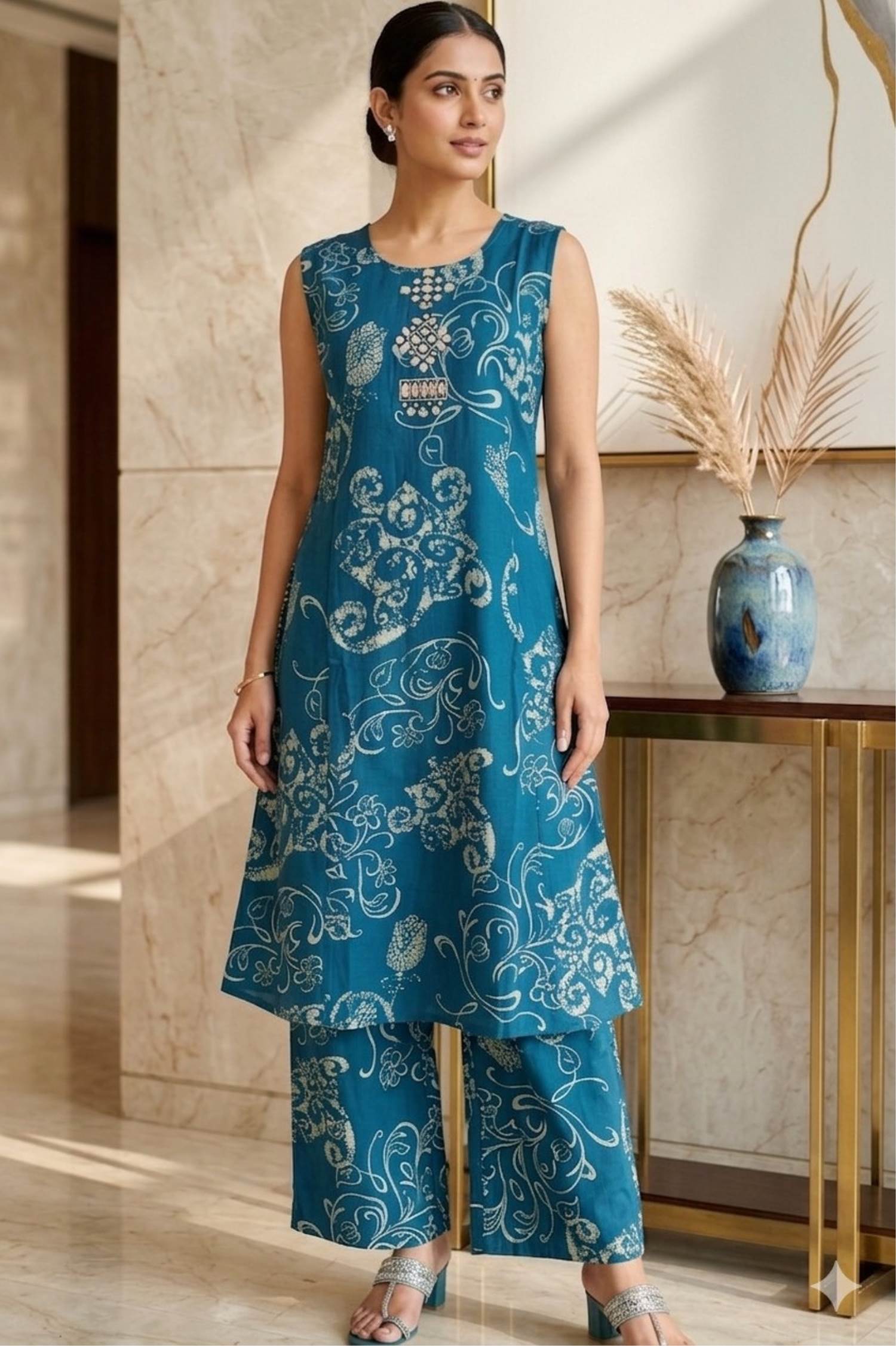 Teal Blue Color casual wear Kurti Pant Suit