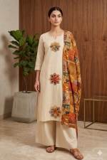 Cream color Casual wear Cotton Dress with Kalamkari Dupatta