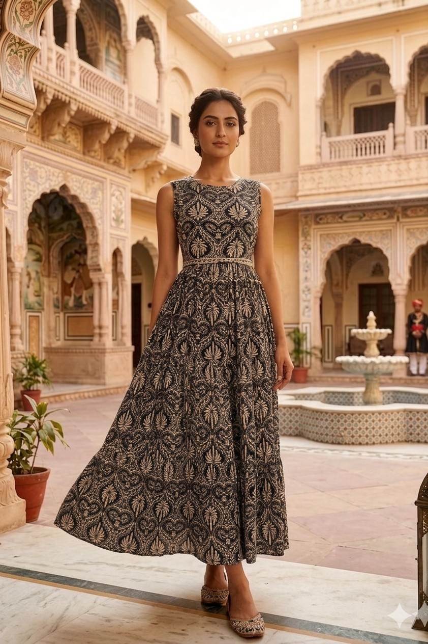 Black color kalamkari Print Flair Kurti :: MY SHOPPY LADIES WEAR