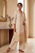 Cream color Casual wear cotton Dress with Dupatta