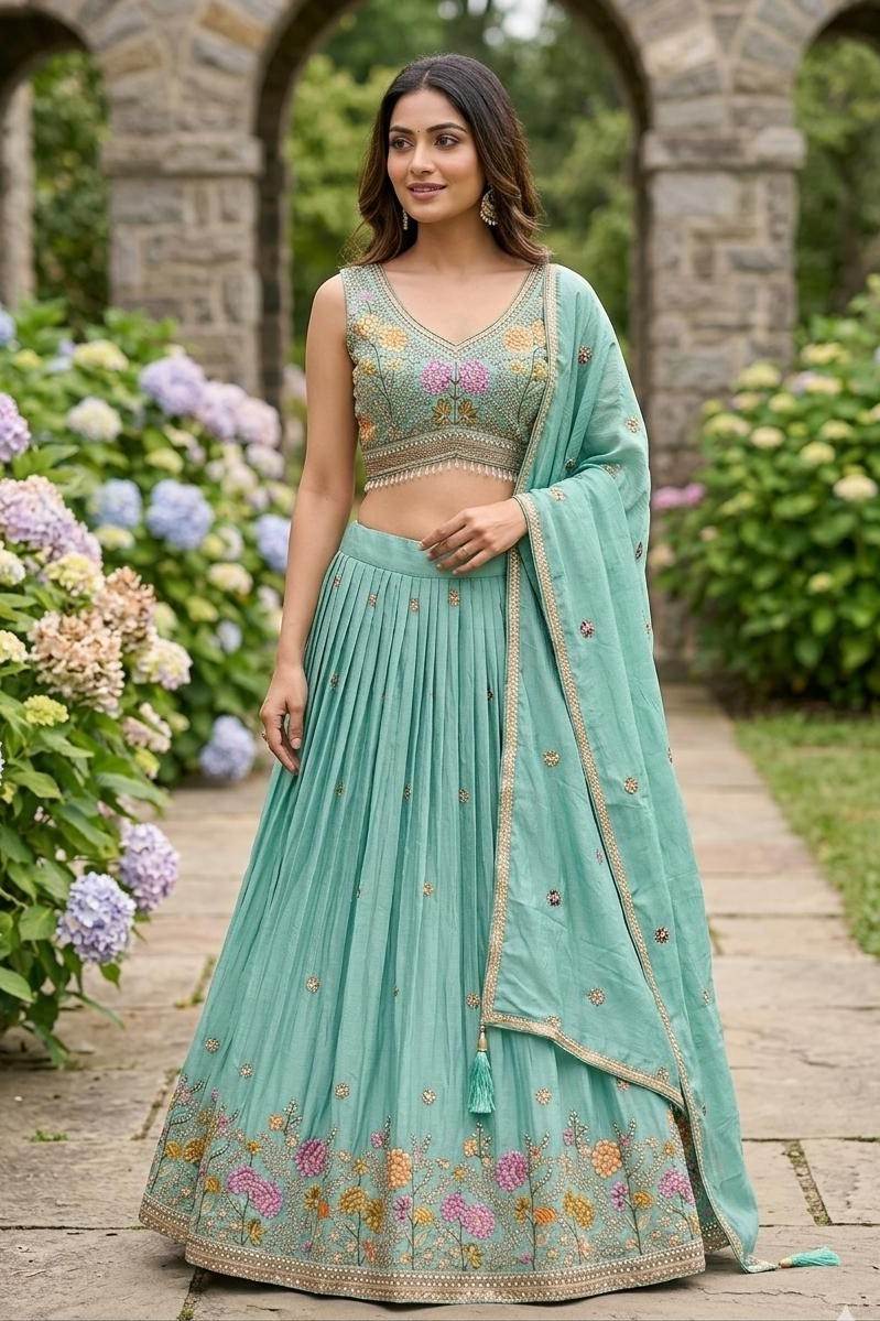 Sky Blue Color Floral Design Lehenga Choli :: MY SHOPPY LADIES WEAR