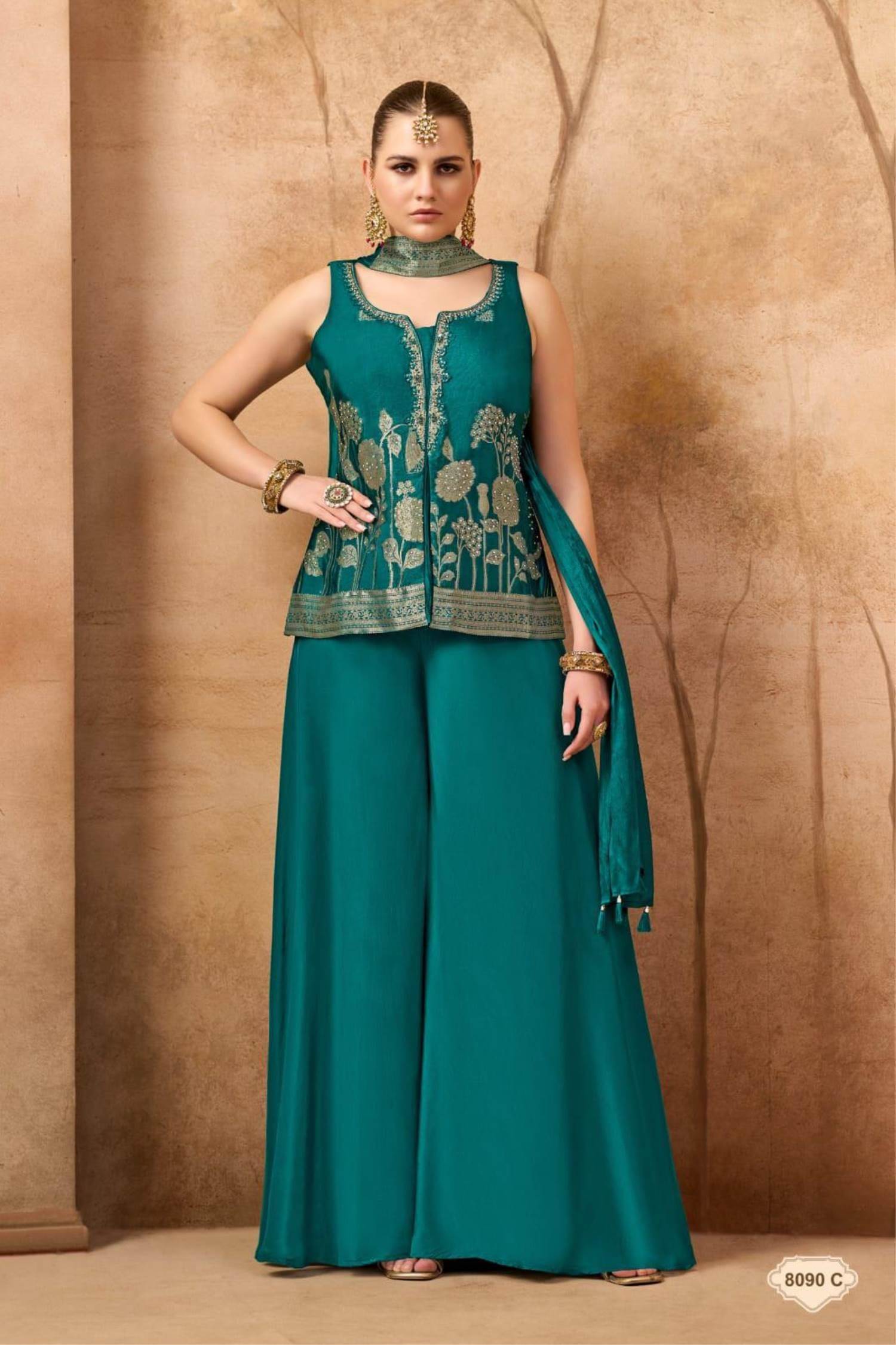 Blue Color Party Wear Designer Plazo Suit