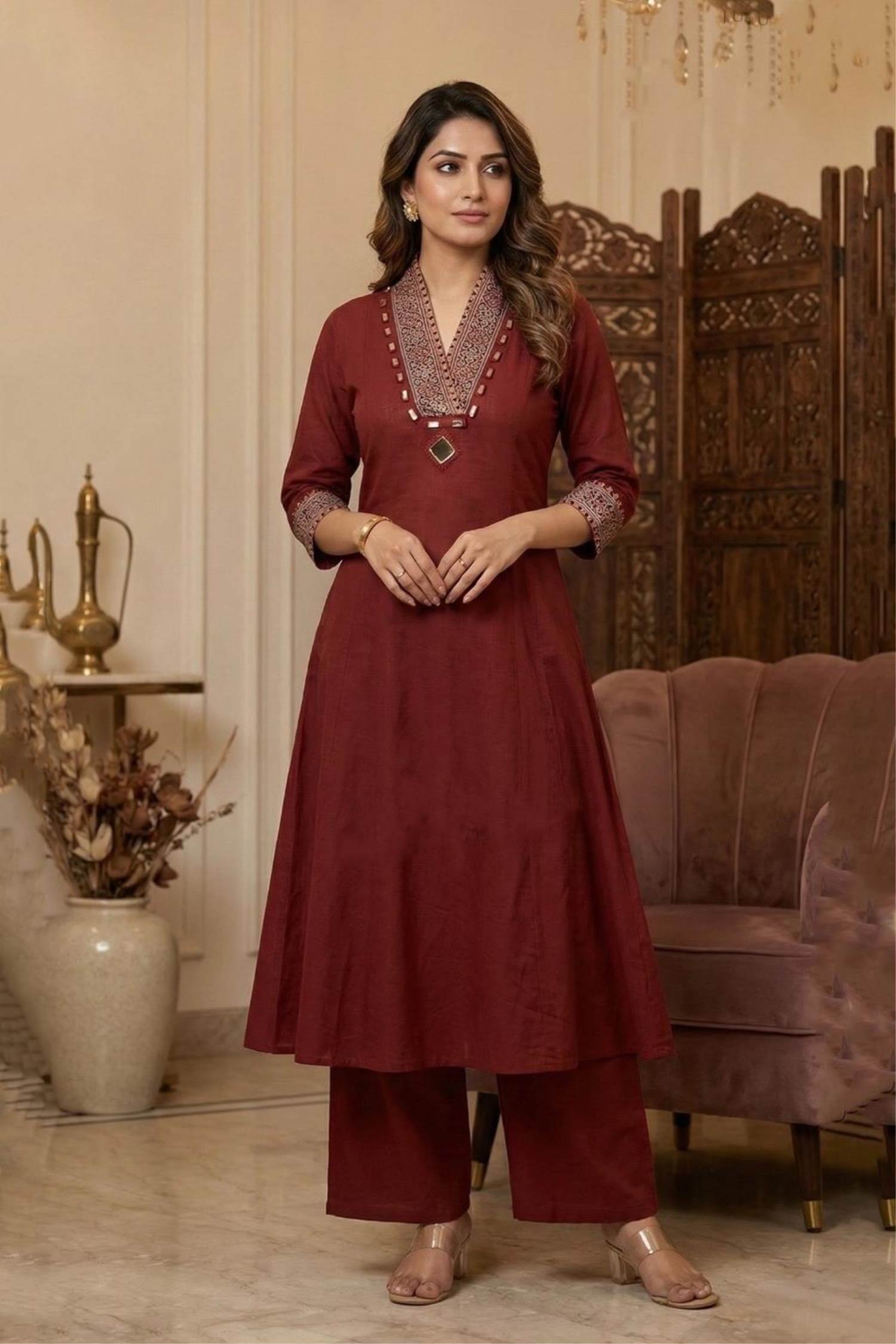 Maroon Color Casual Wear Kurti With Plazo :: MY SHOPPY LADIES WEAR