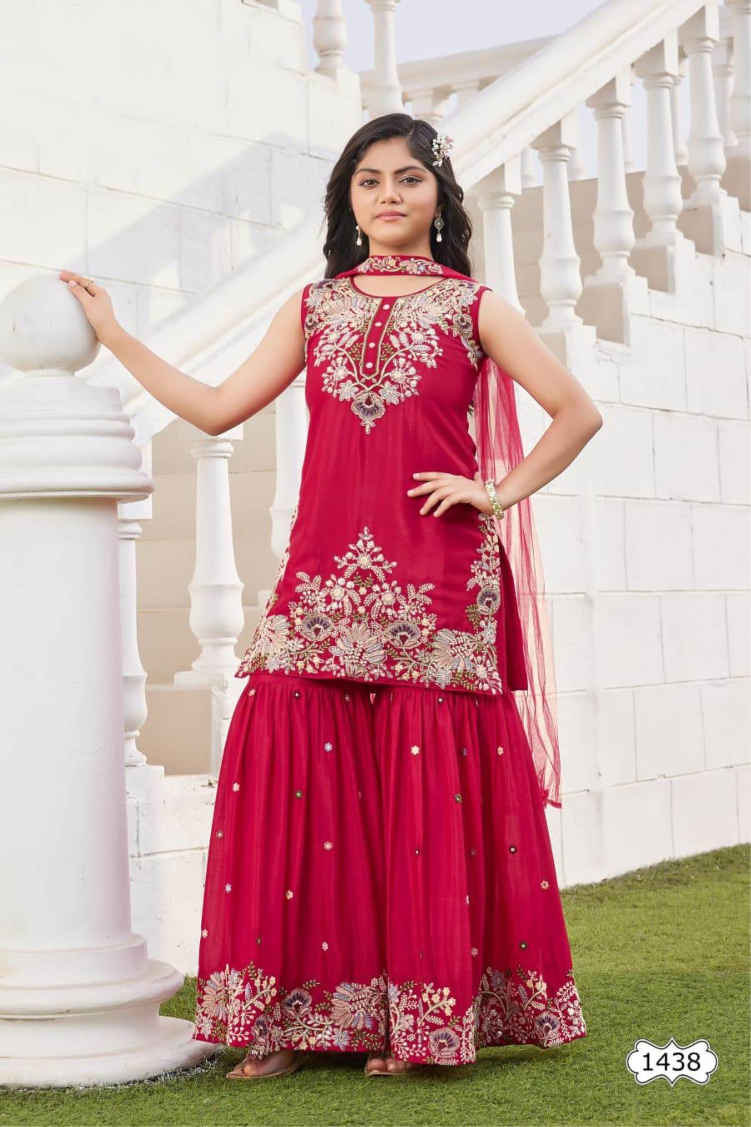 Red Color Party Wear Designer Indo-Western Plazo Suit