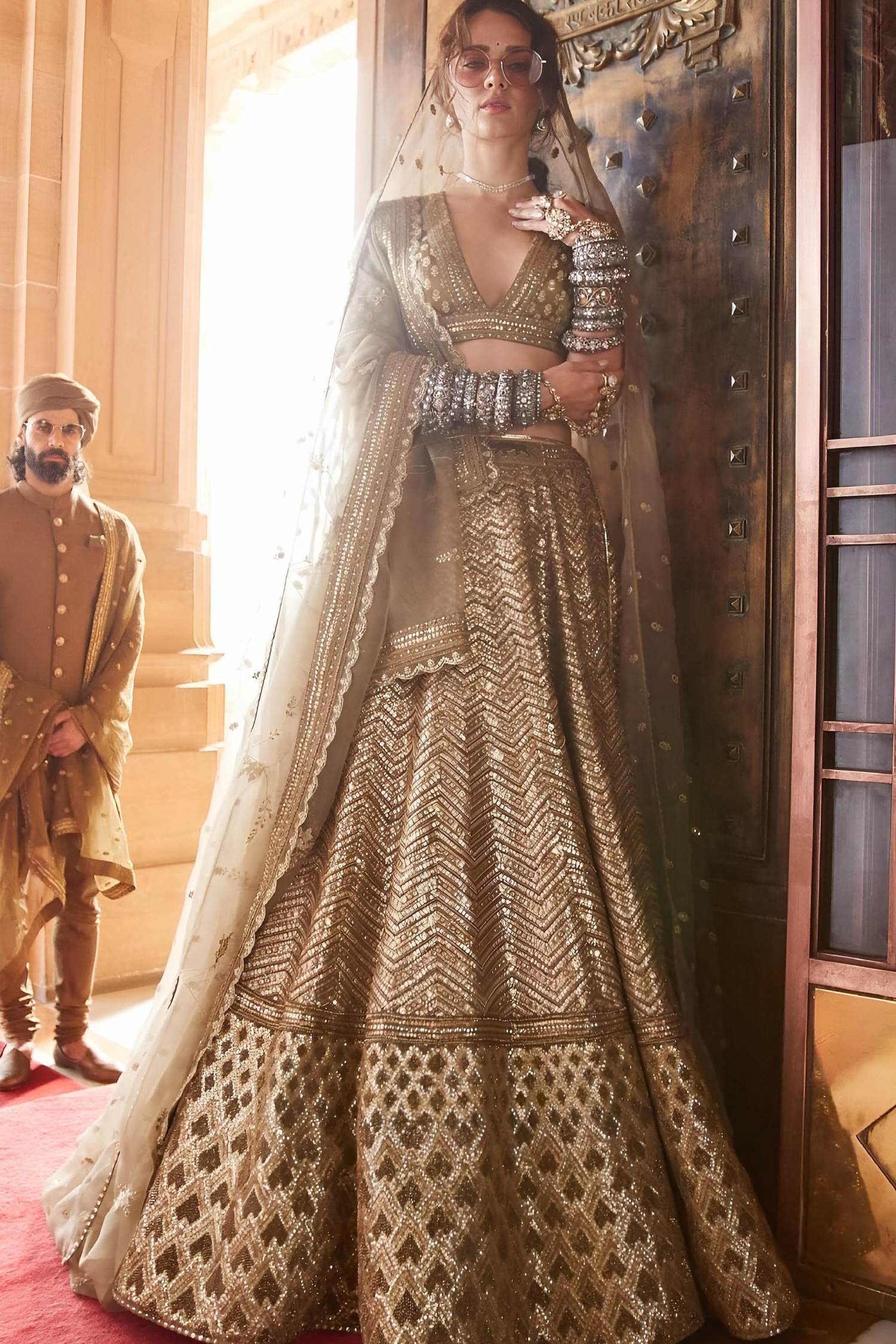 Gold Color Party War Designer Semi-Stitch Lehenga Choli