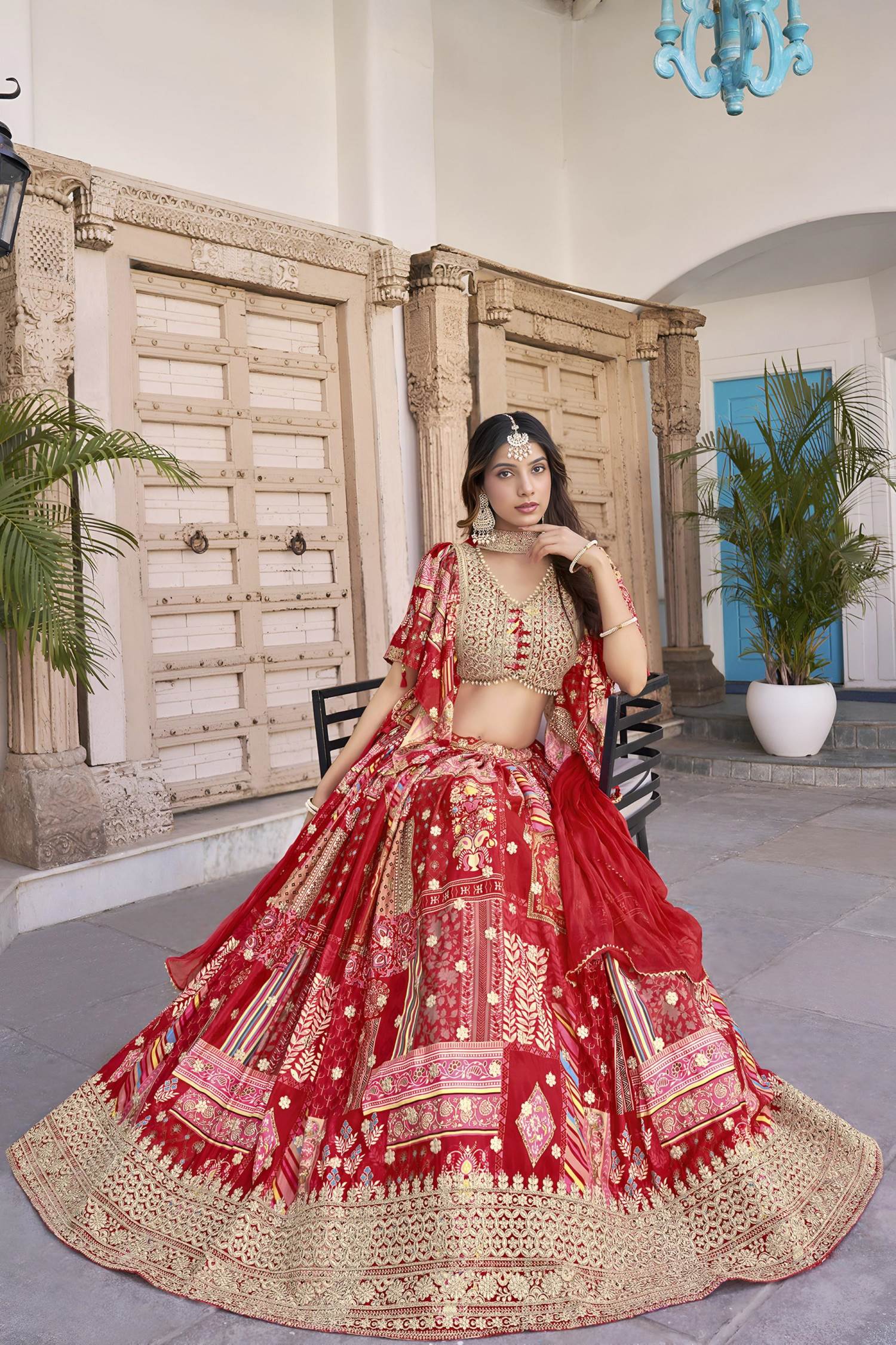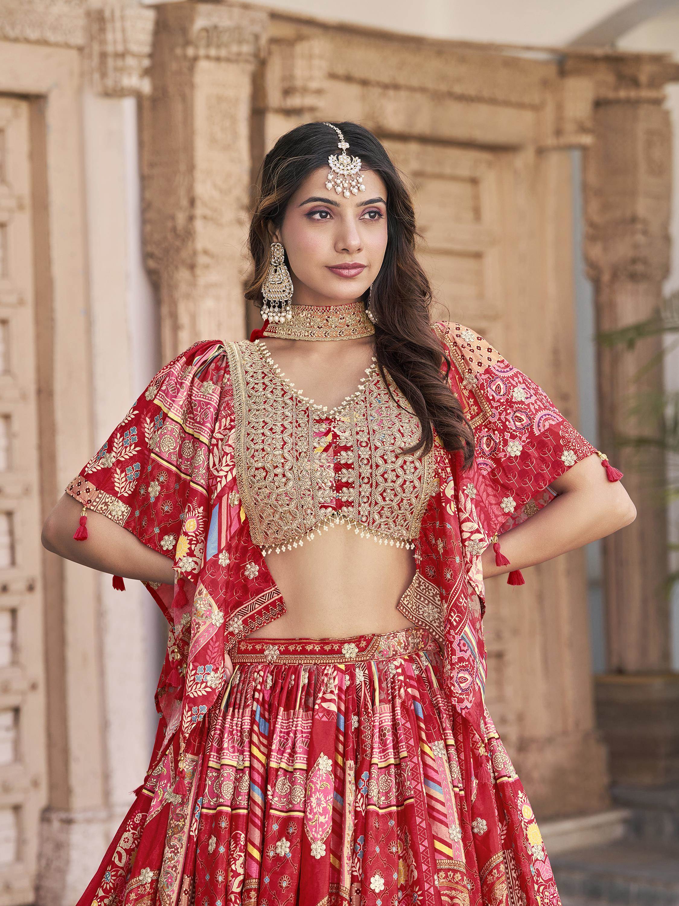 Red Color Party War Designer Printed Semi-Stitch Lehenga Choli :: MY SHOPPY LADIES WEAR