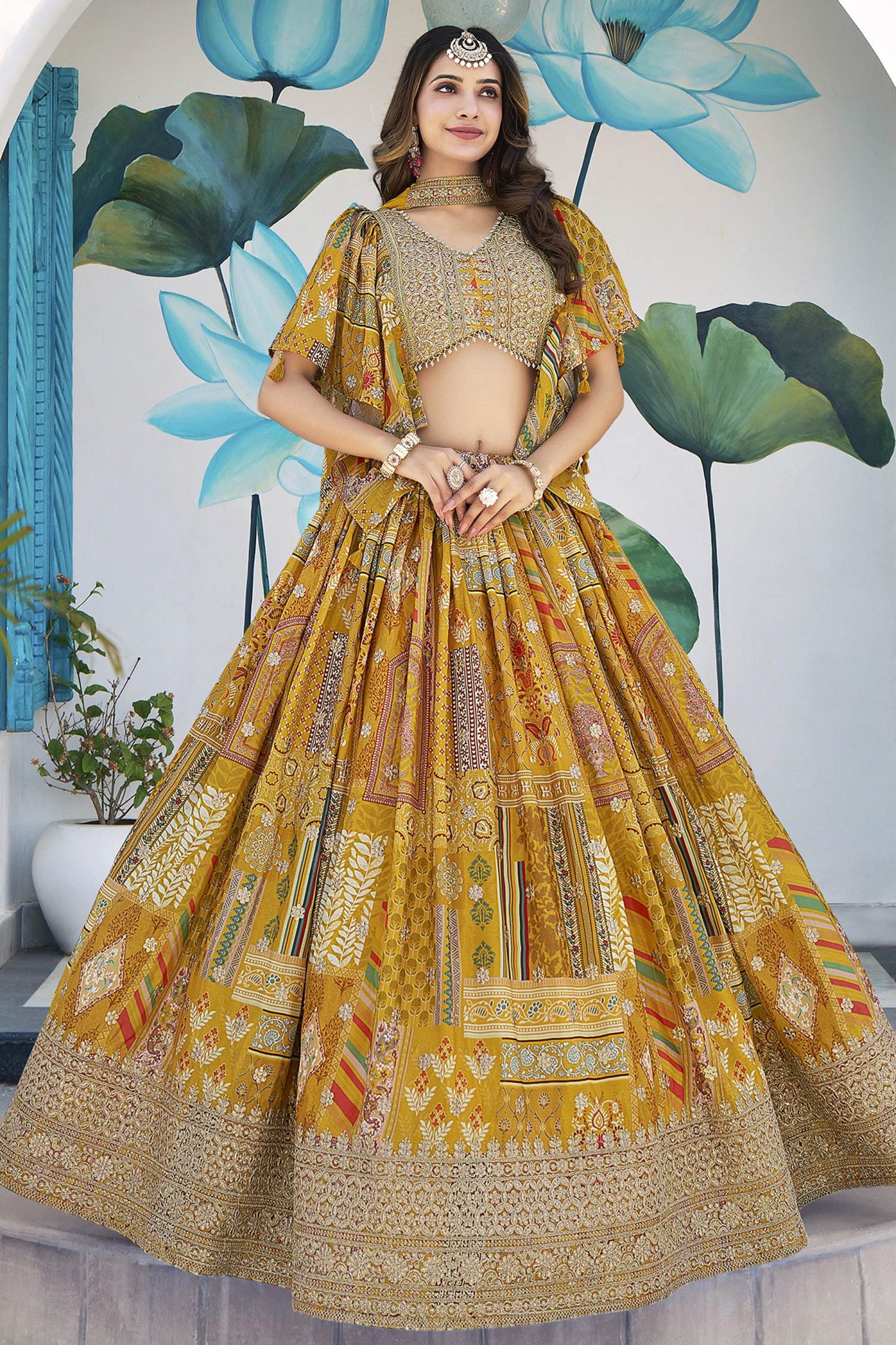 Yellow Color Party War Designer Printed Semi-Stitch Lehenga Choli :: MY SHOPPY LADIES WEAR