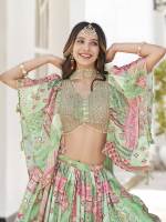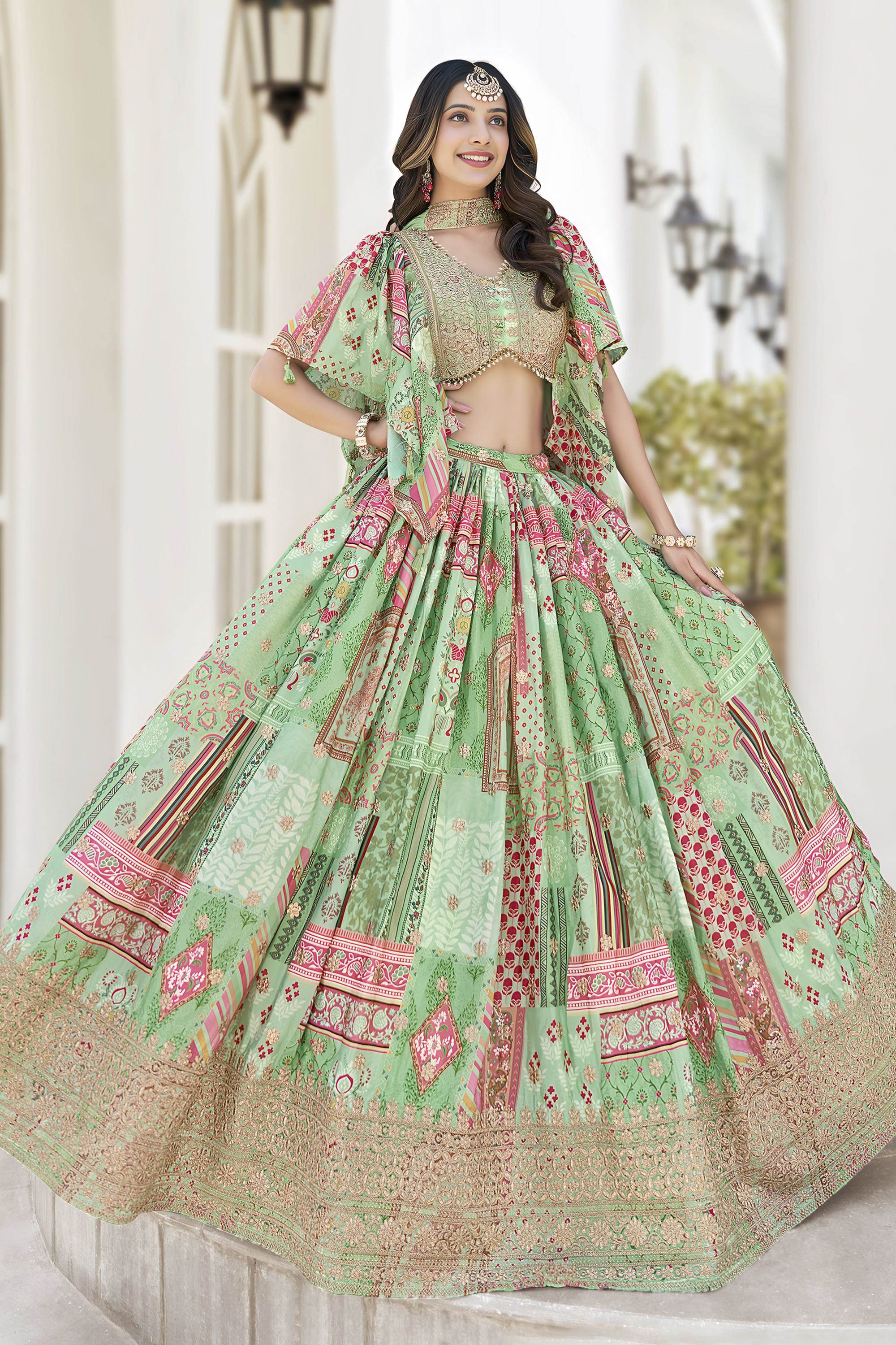 Green Color Party War Designer Printed Semi-Stitch Lehenga Choli