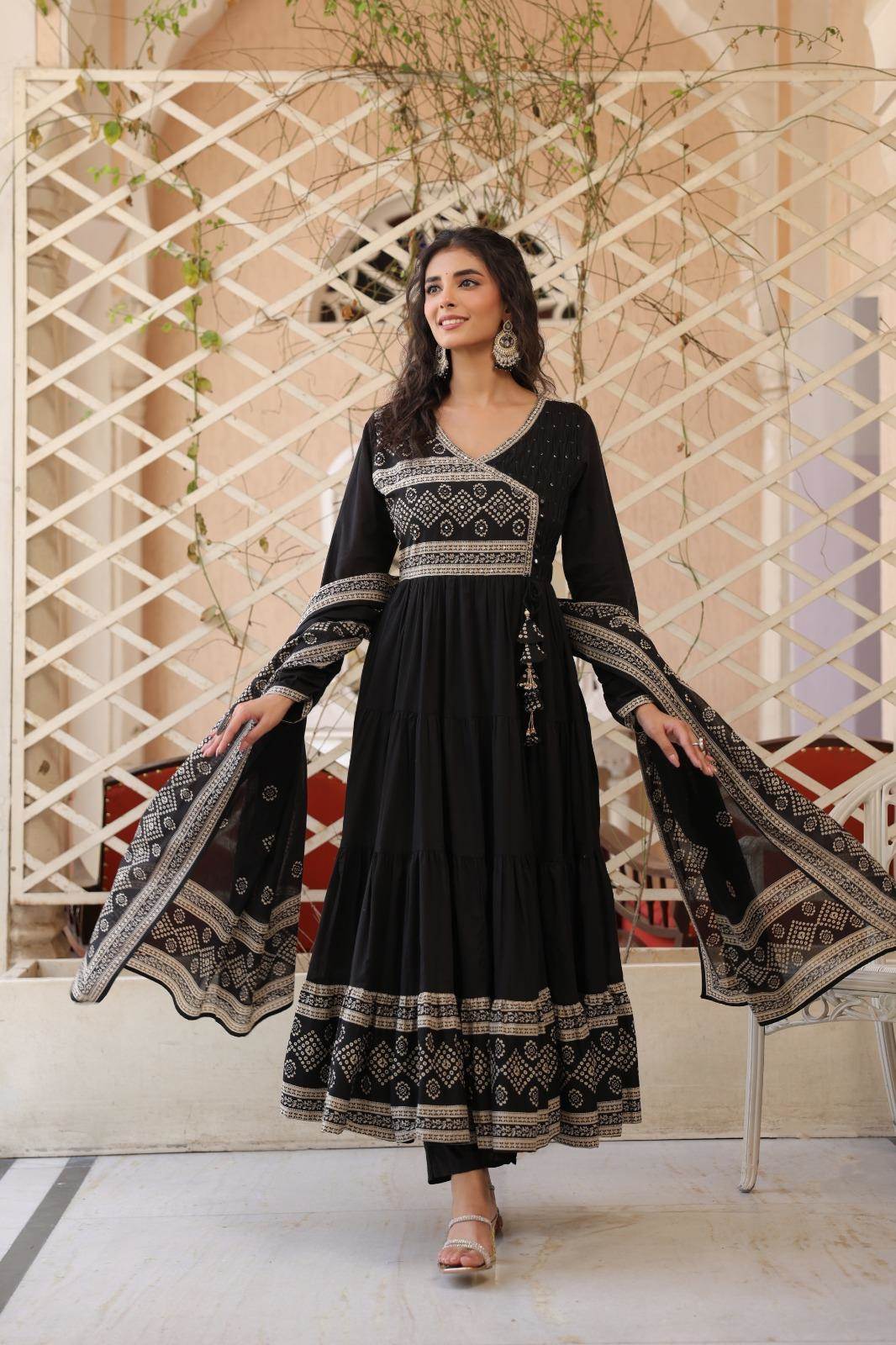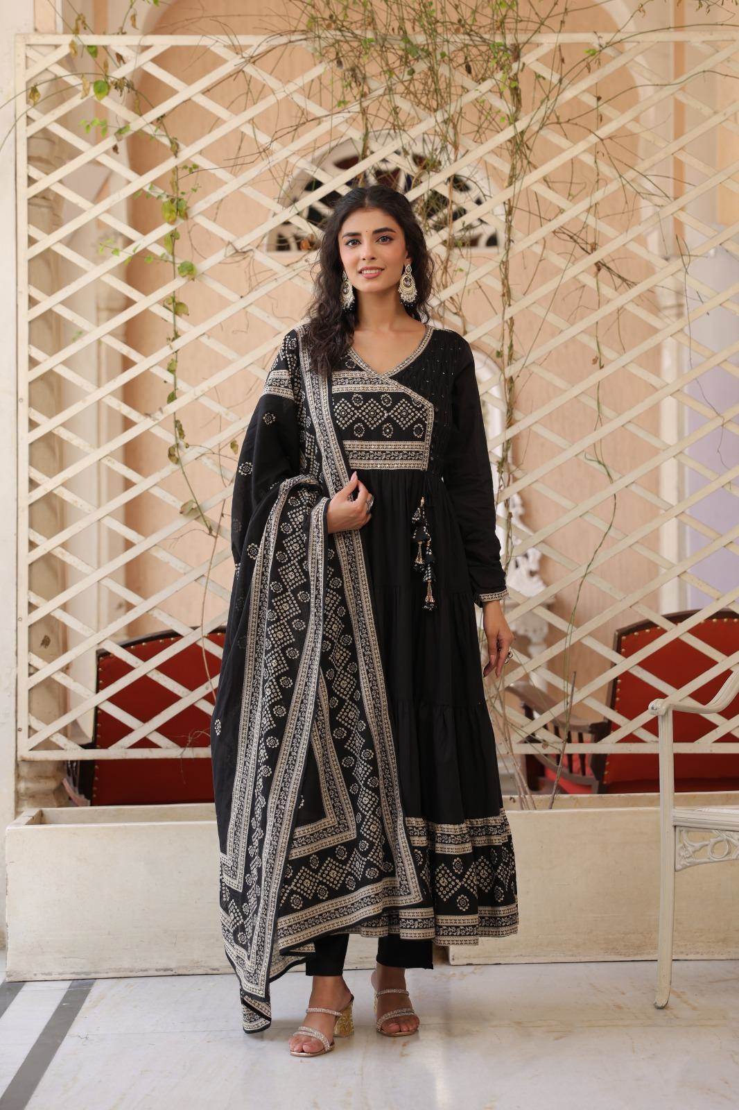 Black Color Casual Wear Designer Cotton Anarkali Suit