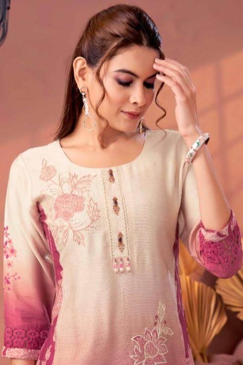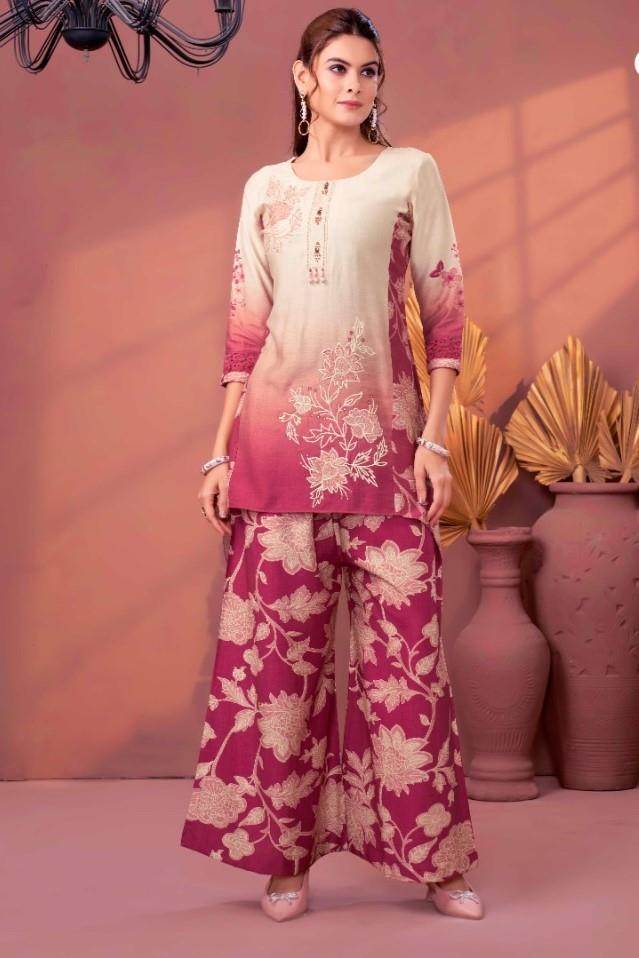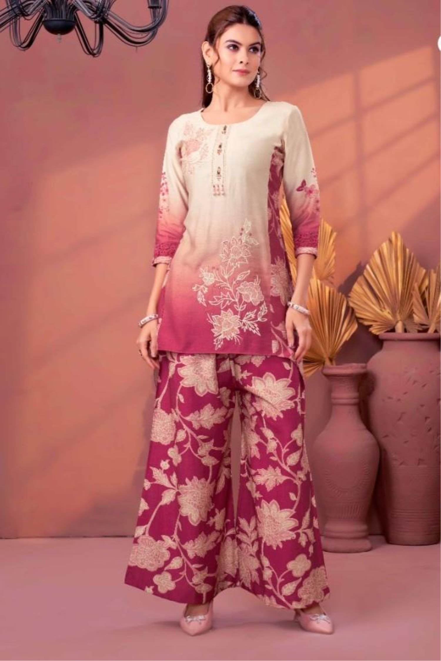 Cream and pink Color Party Wear Designer Co-ord set :: MY SHOPPY LADIES WEAR