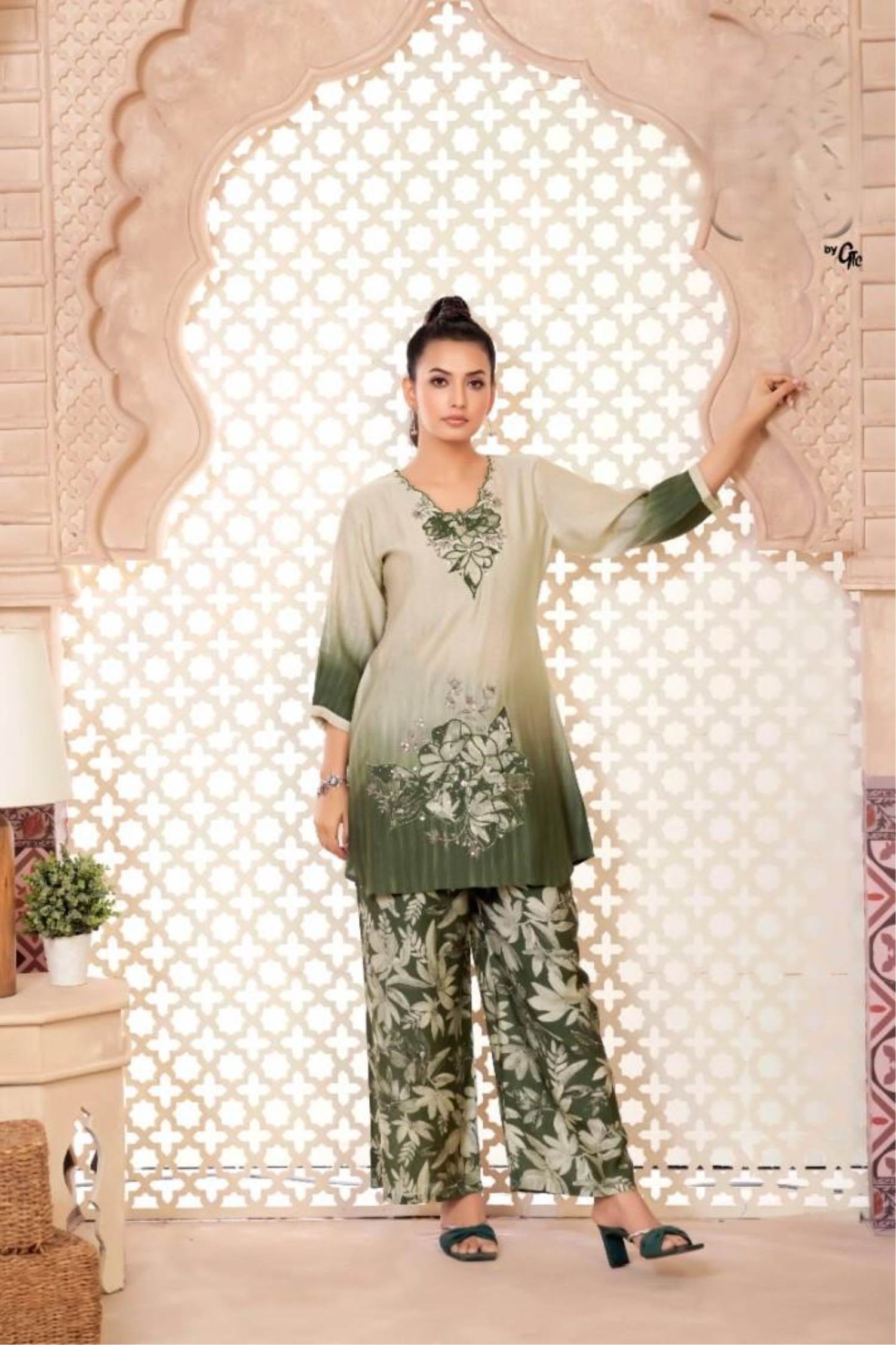 Cream Color Party Wear Designer Co-ord set :: MY SHOPPY LADIES WEAR