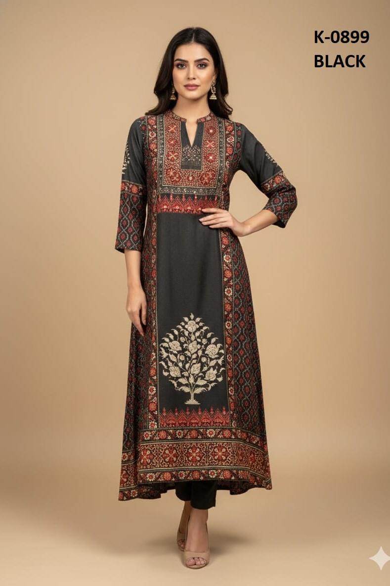 Black Color Party Wear Designer Straight Kurti
