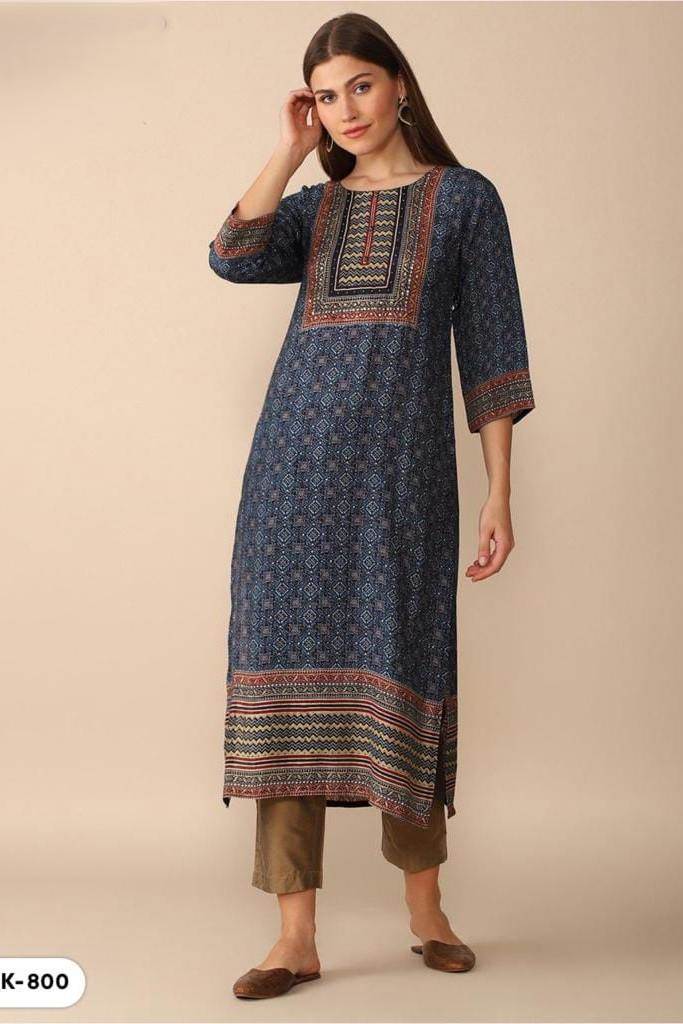 Blue Color Party Wear Designer Straight Kurti