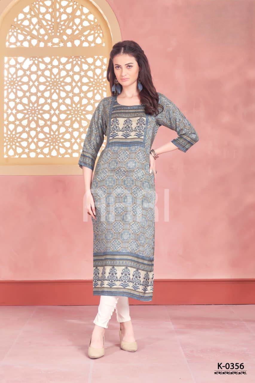 Blue Color Party Wear Designer Straight Kurti