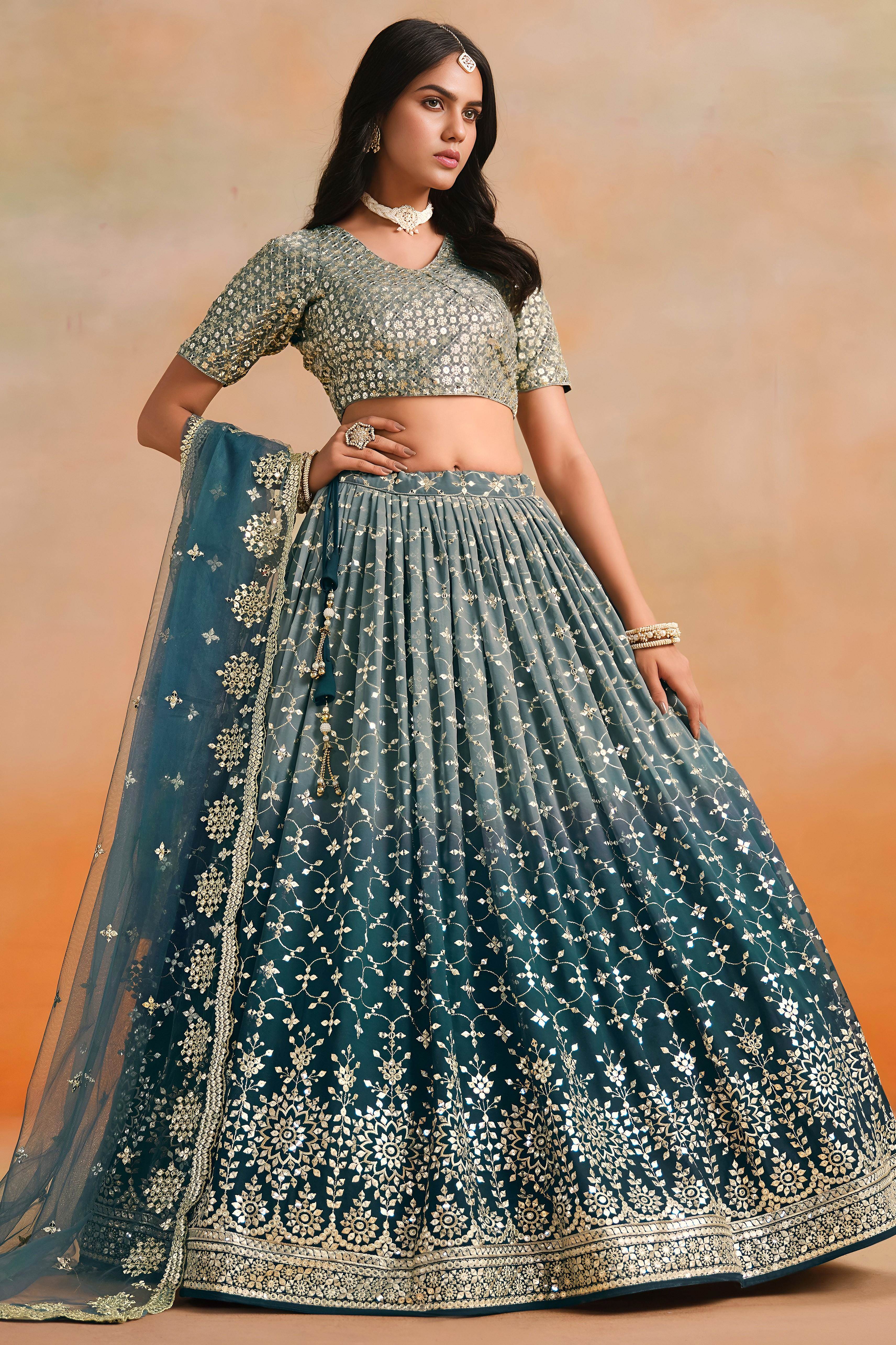 Dove Blue Color Party War Designer Semi-Stitch Lehenga Choli