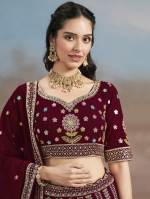 Maroon Color Party War Designer Semi-Stitch Lehenga Choli