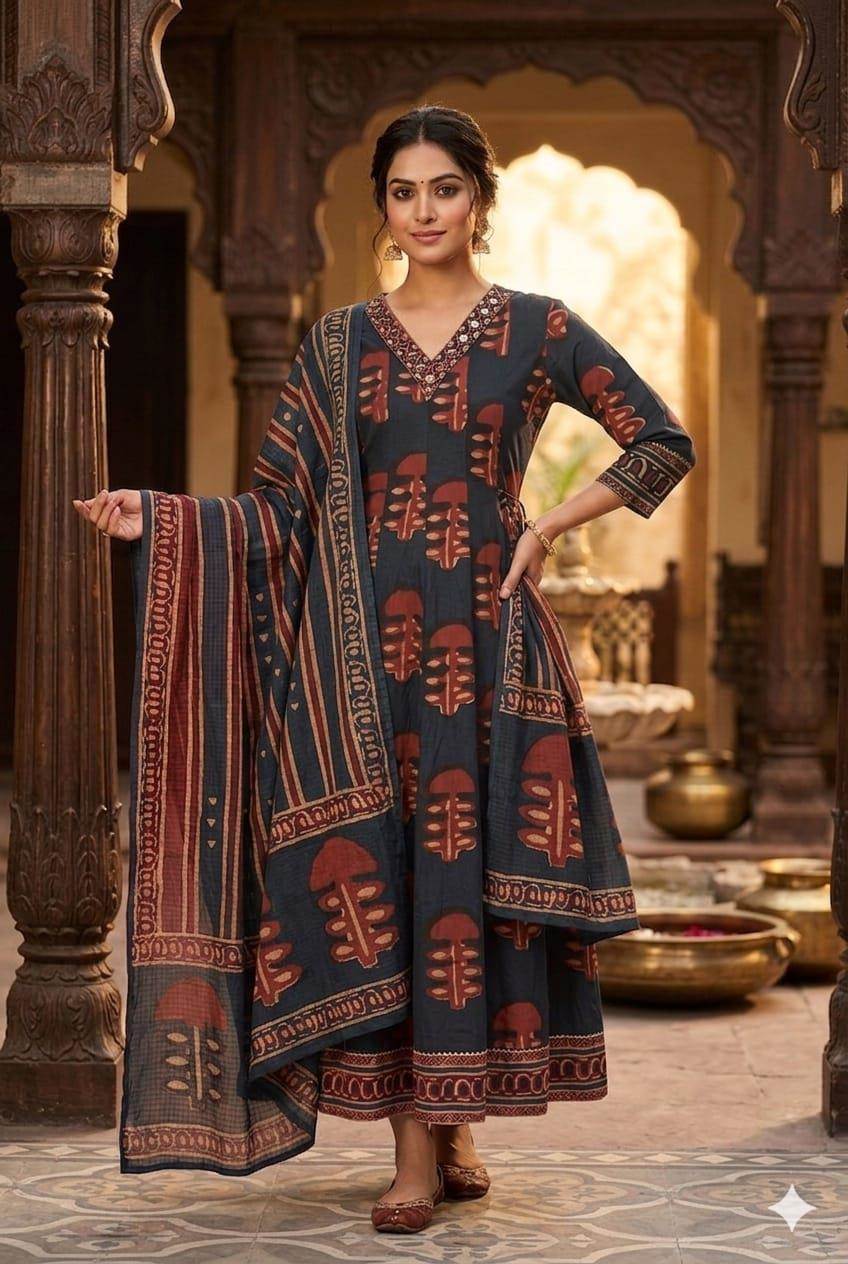 Black Color Casual Wear Designer Cotton Gown Kurti With Dupatta :: MY SHOPPY LADIES WEAR