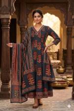 Black Color Casual Wear Designer Cotton Gown Kurti With Dupatta