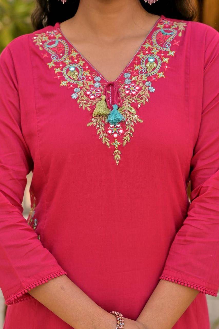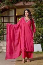 Rani Color Casual Wear Designer Cotton Anarkali Suit