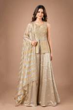 Peach Color Party Wear Designer Short Plazo Suit