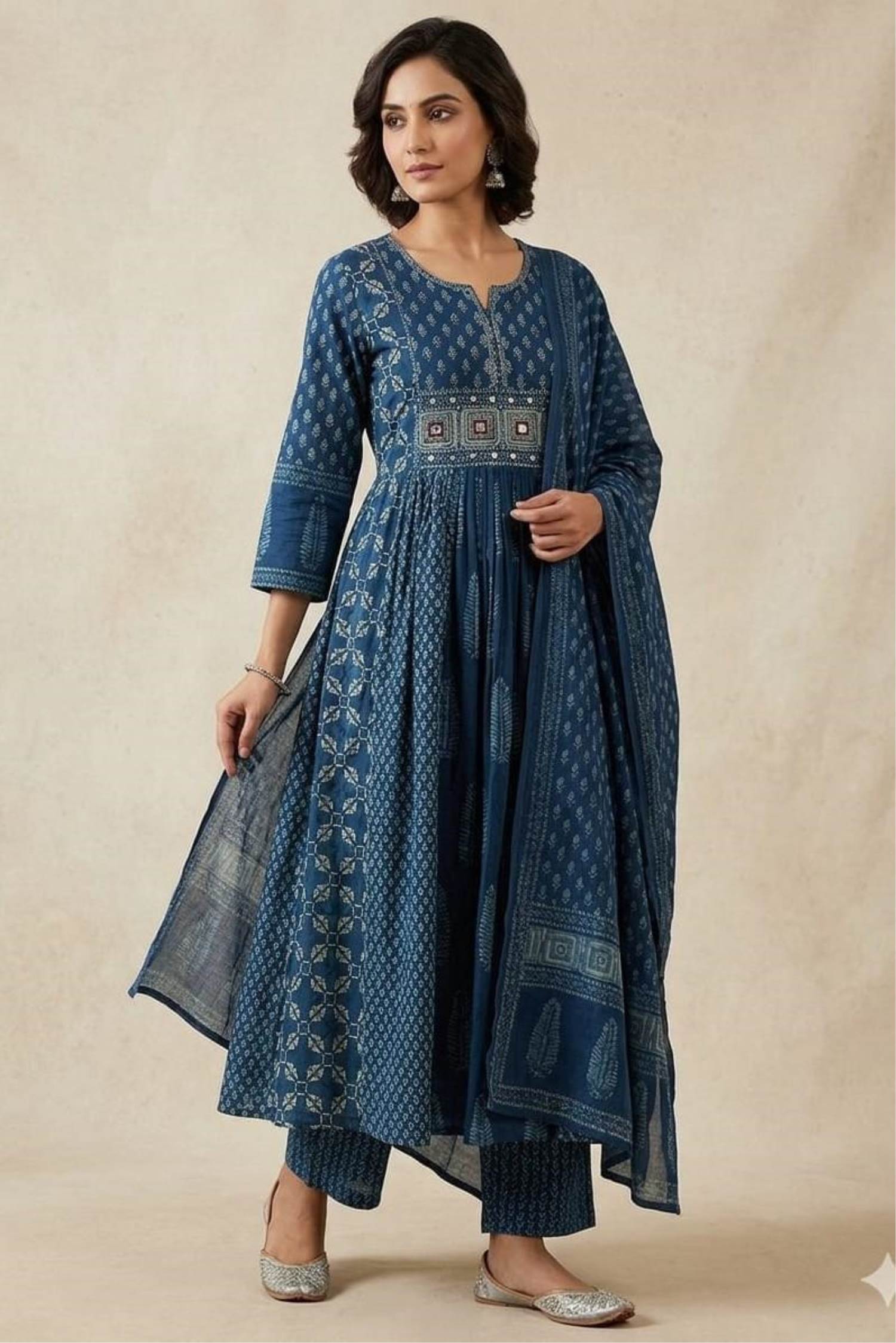 Blue Color Casual Wear Designer Cotton Anarkali Suit
